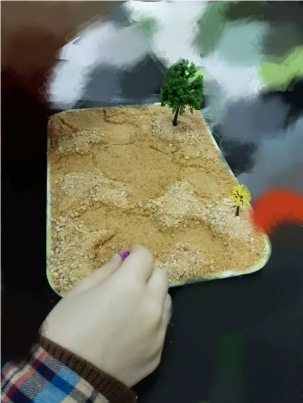 拿出之前就已經(jīng)堆好了地形的沙盤。