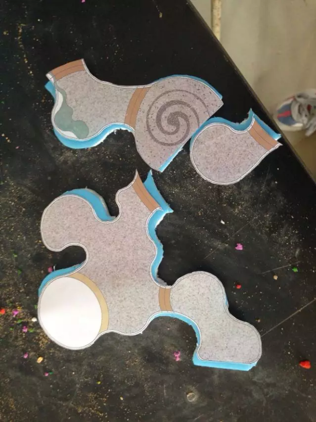 然后把鋪裝弄好,用之前打印出來的平面圖摳出鋪裝部分,在KT板上裁好,然后把鋪裝粘在KT板上。弄好鋪裝后可以先放一邊了。?