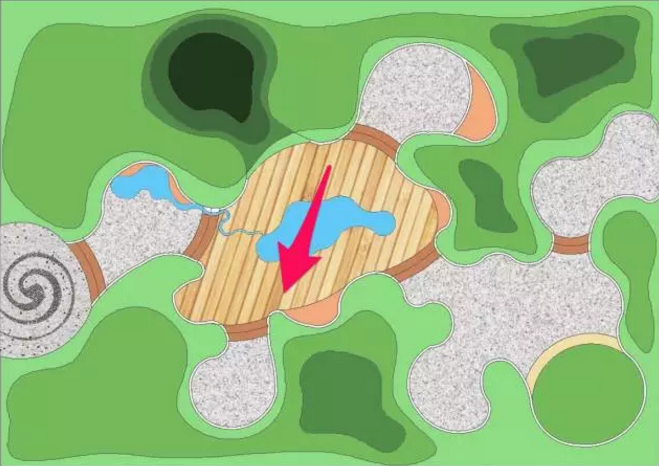 因為庭院略復雜,小編的組準備了好幾張平面圖,都是把鋪裝部分全摳出來了。把鋪裝部分往水泥上放。根據(jù)地形圖,把各種標高竹簽插到相應的位置上(注意零點標高是哪里開始),加水泥堆好地形。
